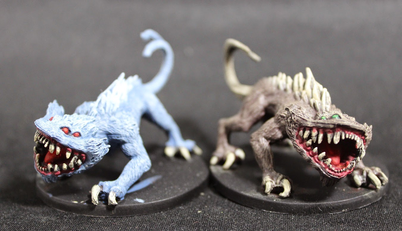 I went a little off-base with the Nexu. I painted the one on the right closer to the classic Nexu from Episode two, but i felt like doing something different for the other one. I really like the contrast between the bluish fur and the bright red maw and eyes though, so i'm pleased with them.